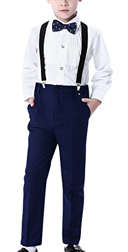 Toddler Boys Suit Set With Suspenders 4 Piece Formal Suit Ring Bearer Wedding Suit Gentleman Outfit With Bowtie Navy 5 On Galleon Philippines